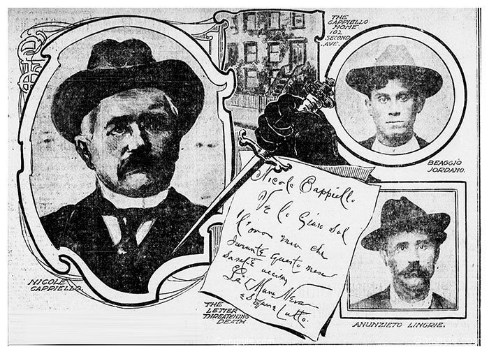 “Mi chiamo Salvatore Spinelli. I miei genitori in Italia avevano una situazione economica solida. Io diciotto anni orsono immigrai negli Stati Uniti e iniziai a lavorare come imbianchino così come faceva mio padre. Ho messo su famiglia e sono cittadino americano da tredici anni. Possedevo una casa al numero 314 di East Eleventh Street e un’altra al 316, che davo in affitto. A un certo punto della mia vita la Mano Nera mi ha fatto una richiesta estorsiva di settemila dollari. A seguito della loro richiesta li ho mandati al diavolo. In conseguenza di ciò i criminali hanno tentato di far esplodere la mia casa. Dopo aver chiesto aiuto alla polizia ho rifiutato di pagare, ma la Mano Nera ha fatto esplodere ben cinque bombe nelle mie case. Tutto andò a pezzi. I miei inquilini da trentadue sono diminuiti fino al numero di sei. Avevo un debito di mille dollari che per il mese prossimo non posso pagare. Io sono un uomo rovinato. La mia famiglia vive nel terrore. C’è un poliziotto di guardia davanti casa mia, ma cosa può fare? Io e mio fratello Francesco stiamo di guardia dietro le finestre giorno e notte. Mia moglie e i miei figli non sono usciti da casa per settimane. Per quanto tempo si può andare avanti così?”
